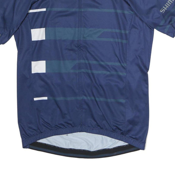 SHIMANO Mens Blue Graphic T-Shirt L Short Sleeve Stand Collar Cycling Jersey