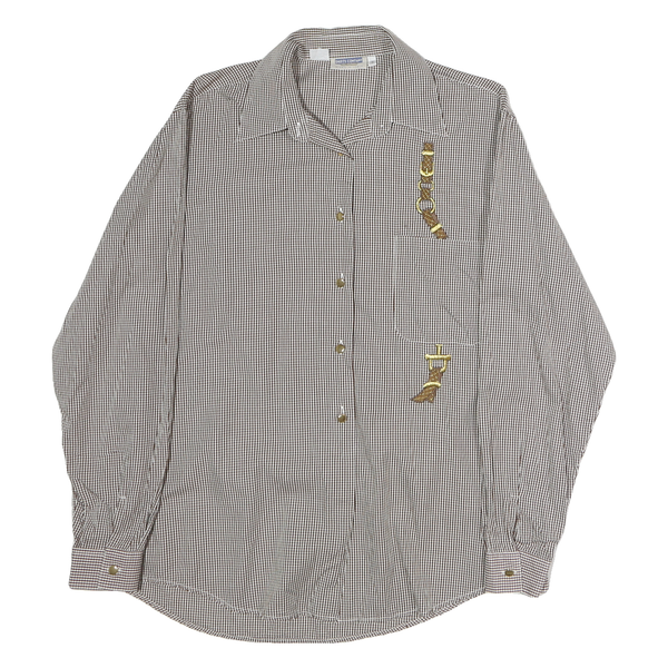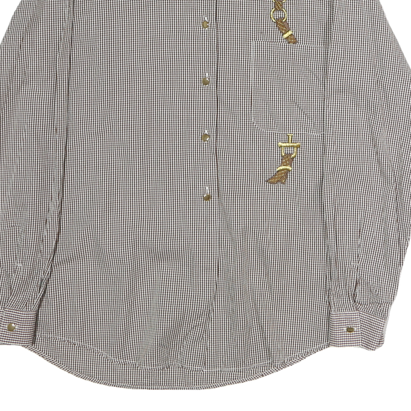 SHIRTS COMPANY Mens Brown & White Check Shirt M Cotton Blend Casual Long Sleeve