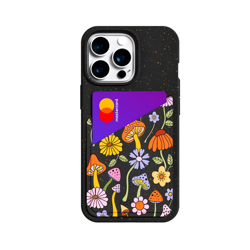 Home Shrooms and Blooms Black Phone Case Card Holder
