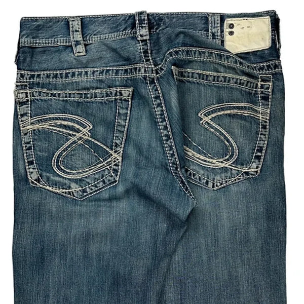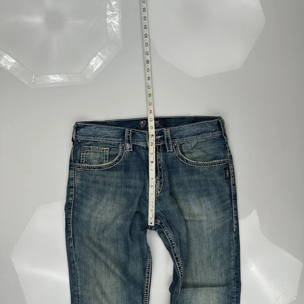 Silver contrast stitch jeans - 36w 30l blue cotton