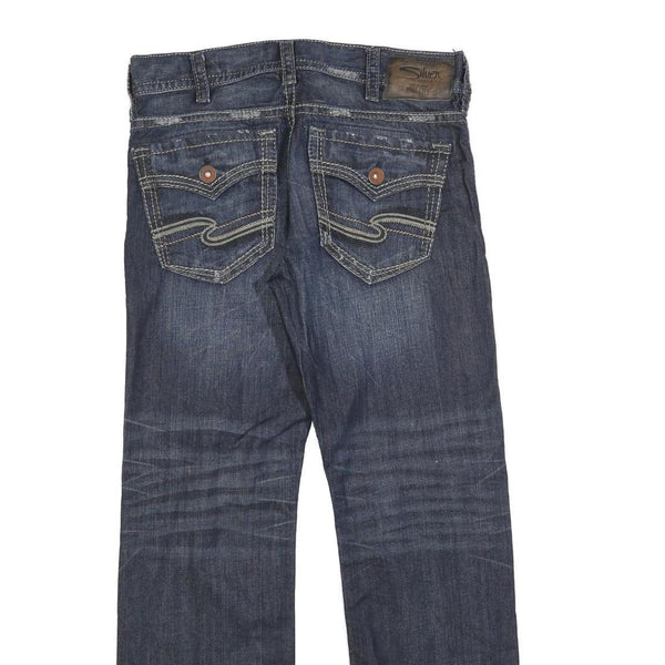 SILVER JEANS Mens Blue Regular Straight Denim Dark W34 L32 Zip Cotton Blend