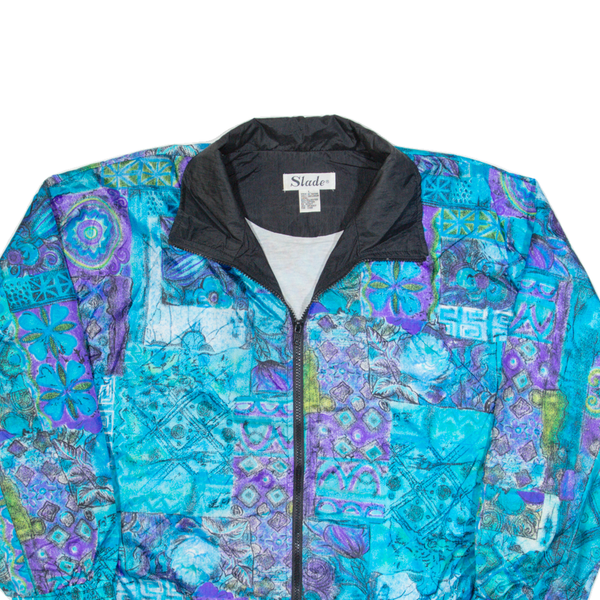 SLADE Womens Shell Jacket Blue 90s Crazy Pattern L