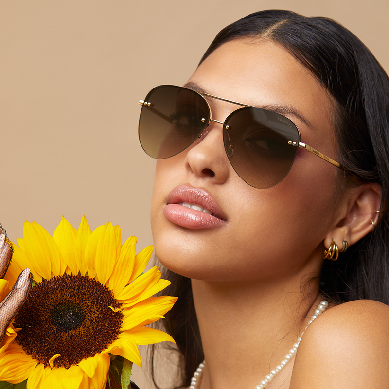 Megan 2 X Topfoxx, is the second collection in collaboration with beauty guru, loving mother, and self-made boss babe Megan Hannigan. This style was made for the busy boss babe who is constantly on the go building her empire, making it a universal style that will go with any look on any day of the week and compliment all face shapes. Though perfect for every day, these aren't your average sunnies - the lux faded black lens has a slight wine tone to give the basic color an elevated look. Using high-precision technology, the entire lens is RIMLESS with silver metal detailing at the nose and edge of the frame, making it a one-of-a-kind pair of aviator sunnies you won't find anywhere else!