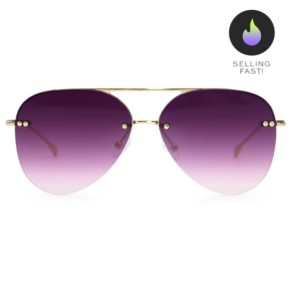 Smaller Megan 2 - Purple Metal Aviator Sunglasses with Gold Frame