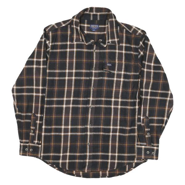 SMITHS Mens Black & Brown Check Shirt M Cotton Blend Casual Button Front