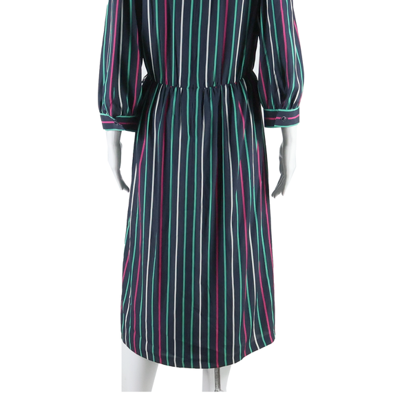 SMODELL Womens Day Dress Blue Striped Long Sleeve Midi M