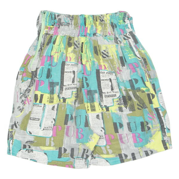 SORBOLI Womens Chino Shorts Green 90s Crazy Pattern XS W24