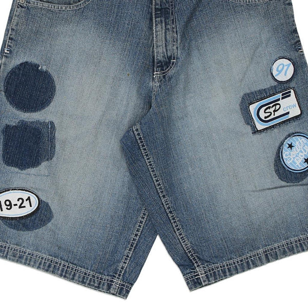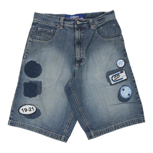 Vintage South Pole blue denim shorts, fit a 35" waist and 13" inseam.