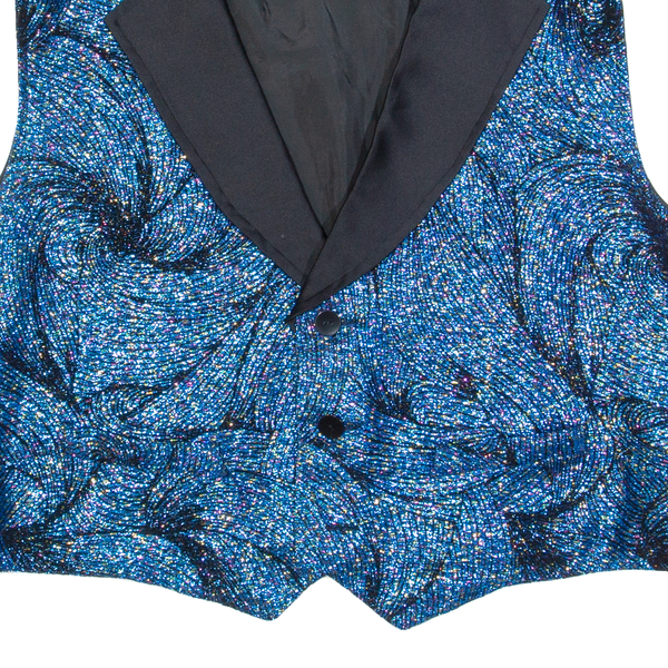 Sparkle Womens Waistcoat Blue Collared Sleeveless XL