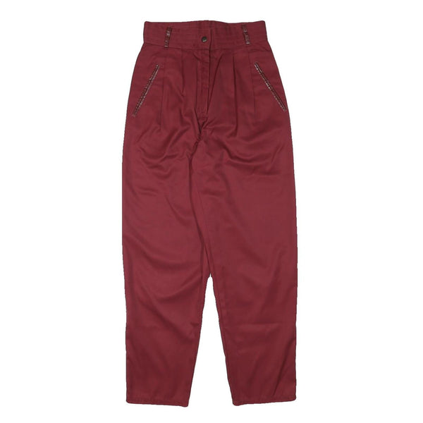 SPENGLER Womens Cotton Blend Maroon Relaxed Tapered Trousers W25 L27 Stylish