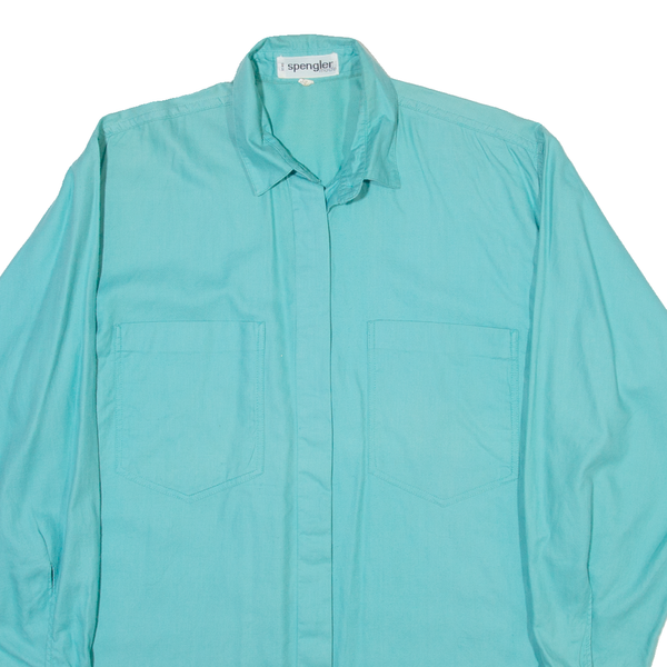SPENGLER Womens Plain Shirt Blue Long Sleeve S