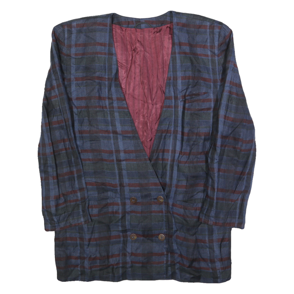 SPOTLIGHT Womens Blue & Brown Long Sleeve Button Cotton Blend Jacket L Check