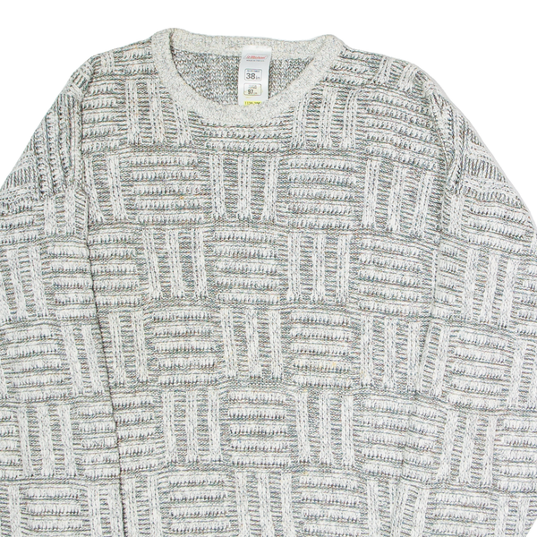 ST MICHAEL Mens Patterned Jumper Grey Crazy Pattern Crew Neck 90s S