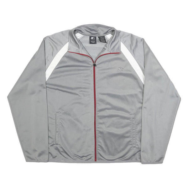 STARTER Mens Grey & White Track Jacket L Polyester Blend Zip Athletic Style