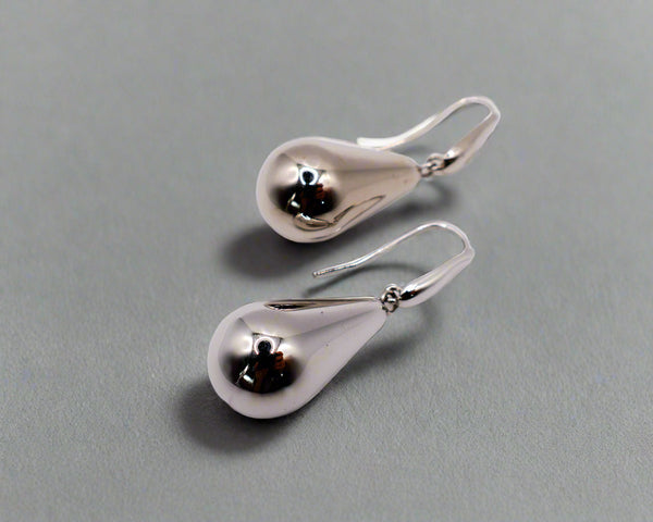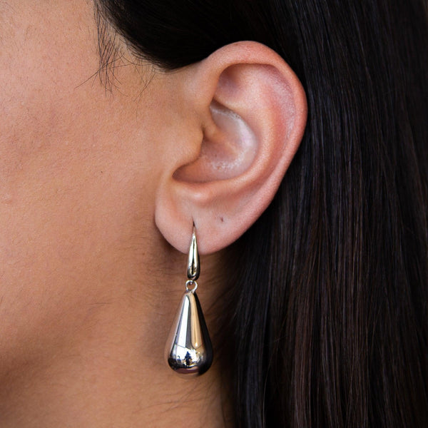 The smooth, polished silver surface captures the essence of raindrops cascading from the sky, reflecting light and creating a subtle yet captivating shimmer. Each earring dangles elegantly from your ear, adding a touch of movement to your look.