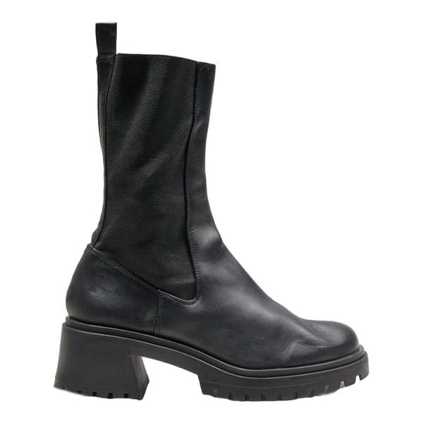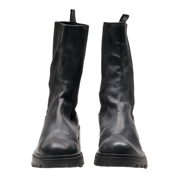 STEVE MADDEN High Boots Black Leather Womens UK 8