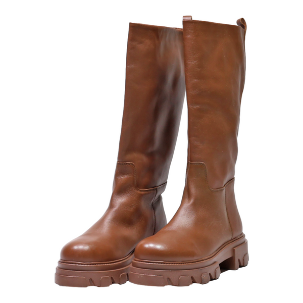 STEVE MADDEN High Boots Brown Leather Womens UK 8.5