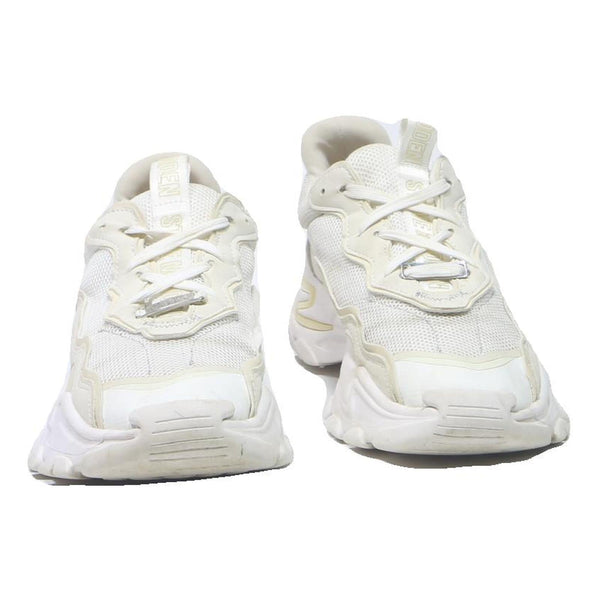 These Steve Madden womens sneakers feature a chunky sole and modern design in a white and cream colour combination. The uppers are crafted from breathable synthetic mesh and synthetic overlays, offering a lightweight and comfortable fit.
