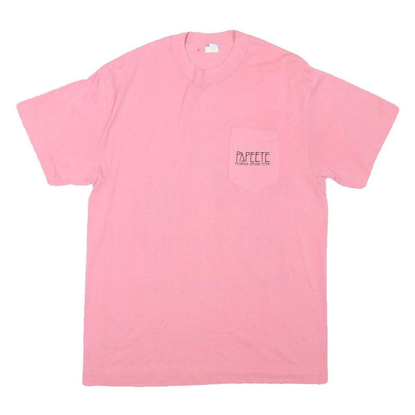 This Womens t-shirt by Sun comes in a vibrant pink cotton blend fabric with a comfortable, classic fit. It features a small left chest pocket printed with the word "PAPEETE" and additional text beneath it, adding understated branding detail on the front.