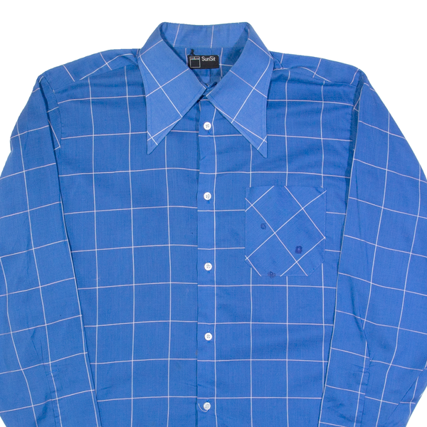 SUNSET Mens Shirt Blue 90s Check Long Sleeve L