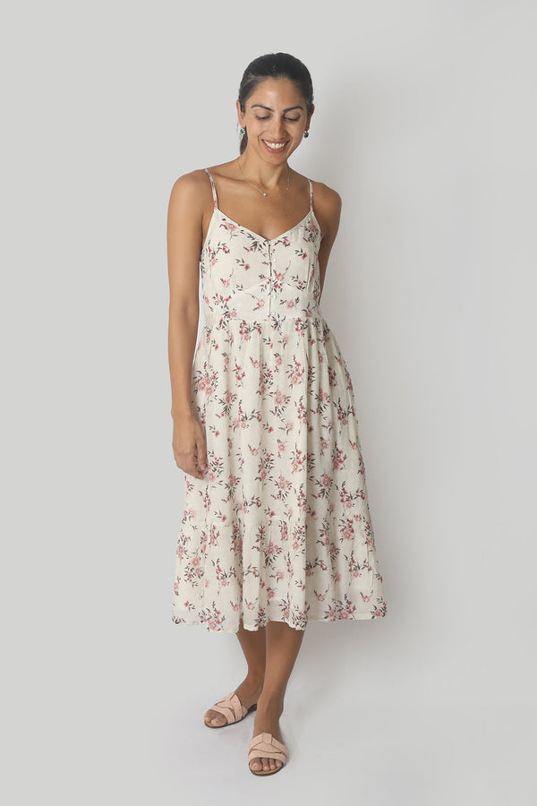 A midi dress in our favourite rose pink print, made with love from 100% eco-friendly fabric.