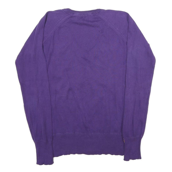 SUPERDRY Mens Purple Plain V-Neck Basic Knit Jumper M Casual Cotton Comfort