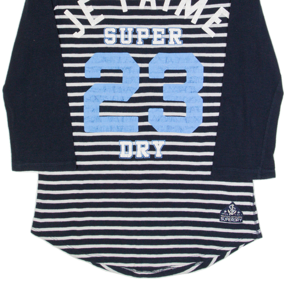 SUPERDRY Striped Womens T-Shirt Blue 3/4 Sleeve XS