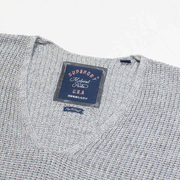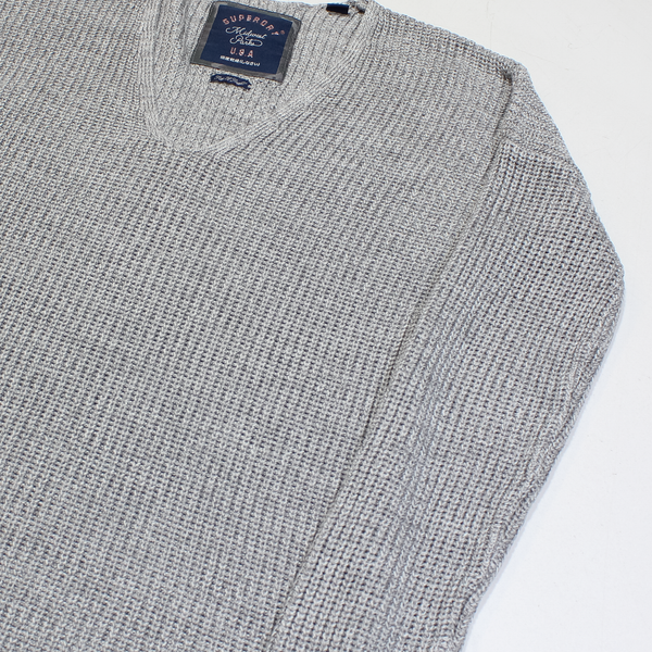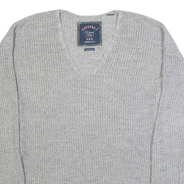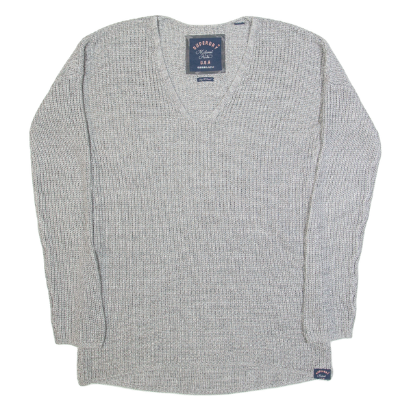 SUPERDRY Womens Jumper Grey V-Neck Tight Knit XS