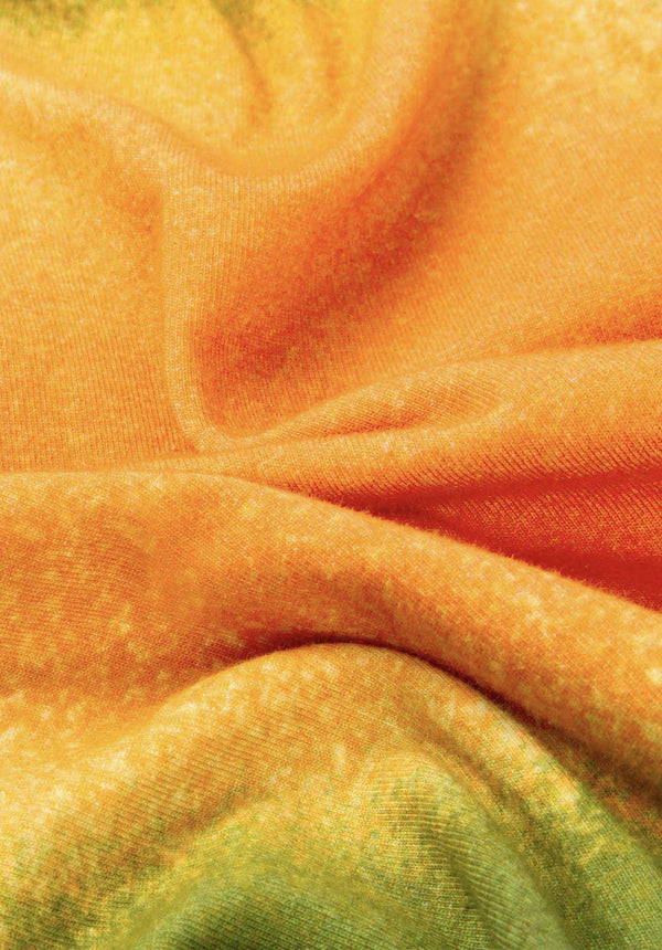Orange top with abstract print. Model Brisa made of Organic Cotton