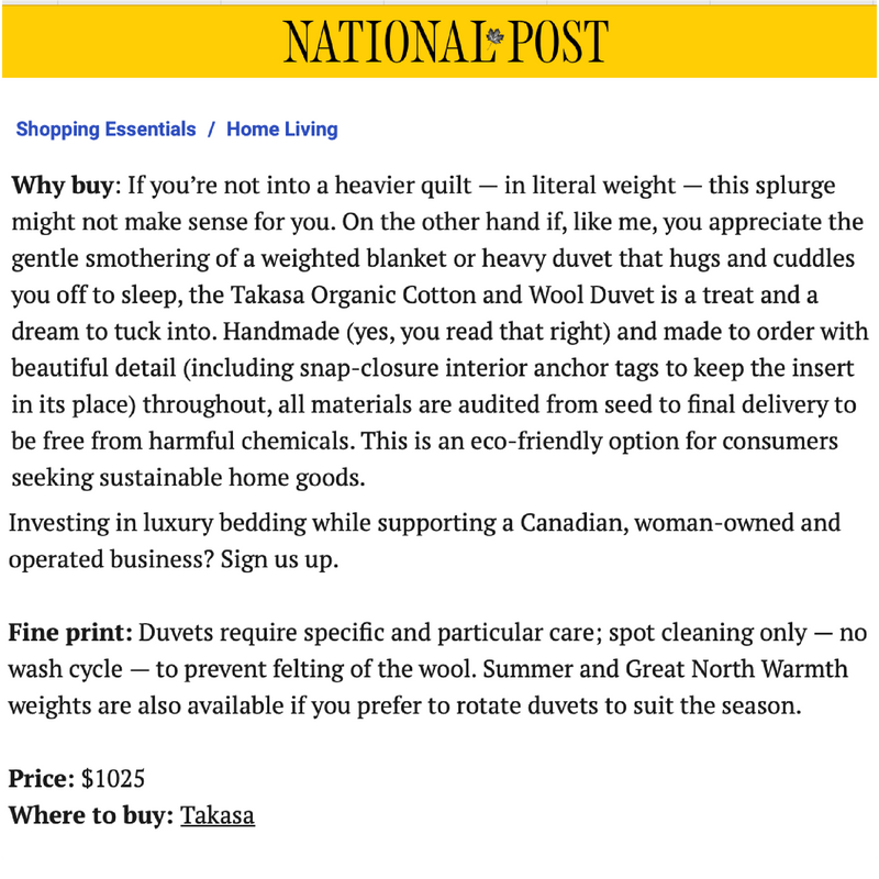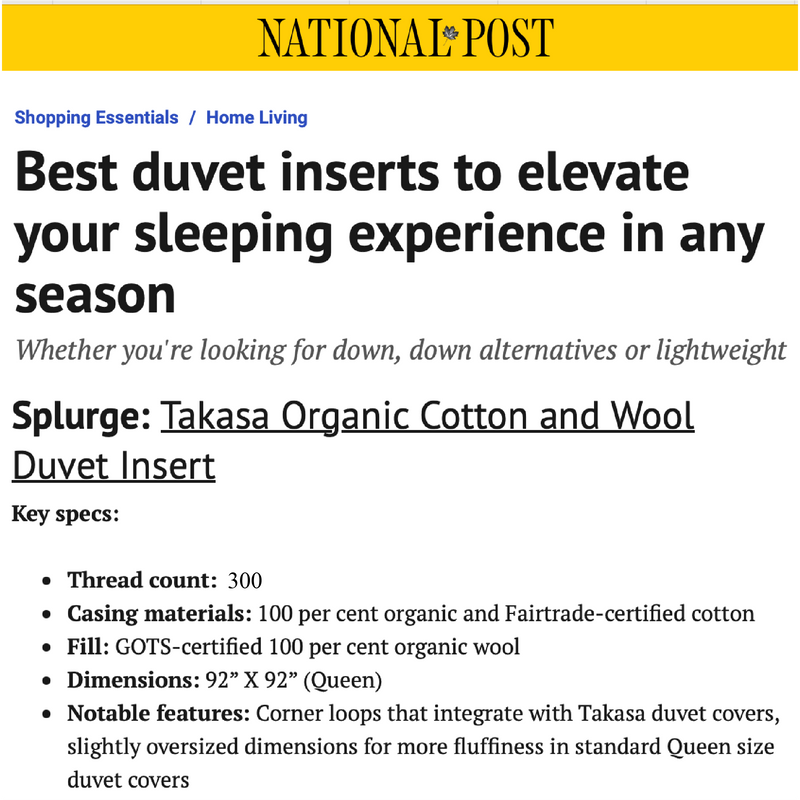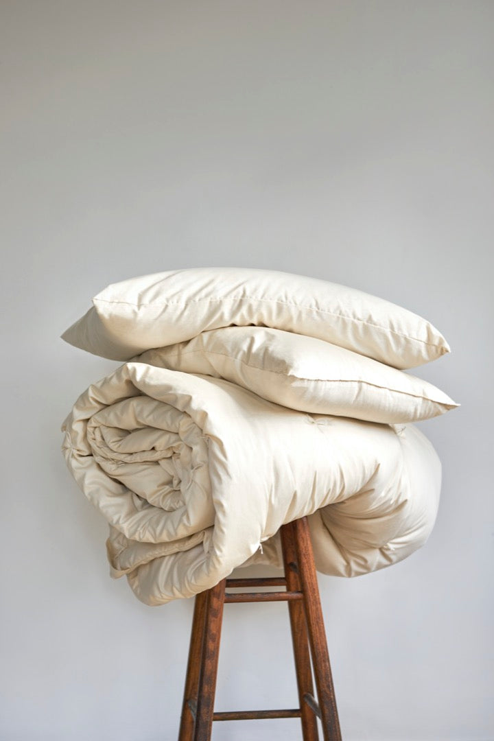 Keep warm + cozy in winter, and cool + breezy in summer with our eco-friendly wool duvet insert. Thoughtfully designed in Canada and crafted by hand in the USA.