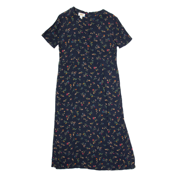TALBOTS Womens A-Line Dress Blue 90s Floral Short Sleeve Midi S