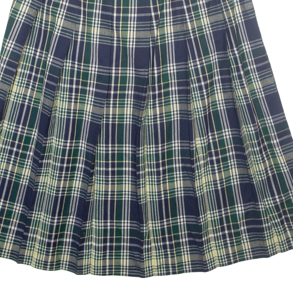 TALBOTS Womens Pleated Skirt Green Midi Wool Check M