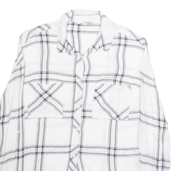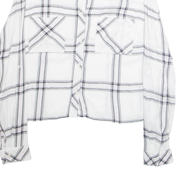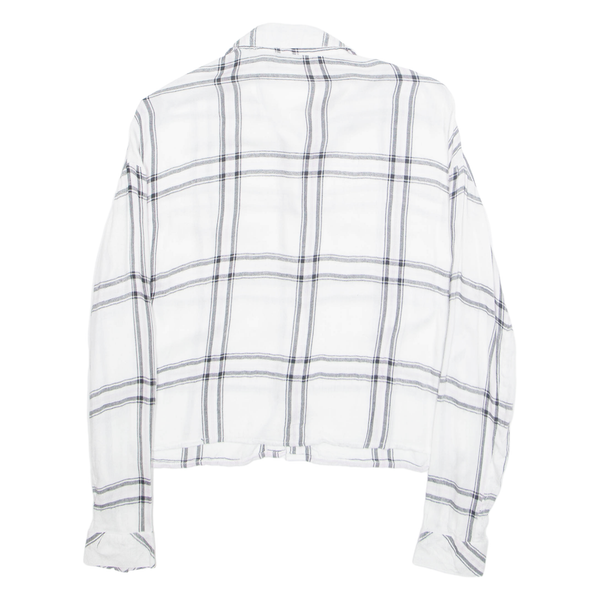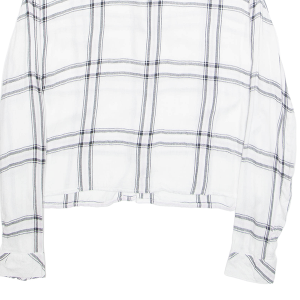 Tally weijl womens cropped blouse white collared long sleeve plaid s