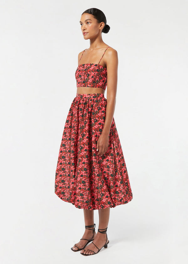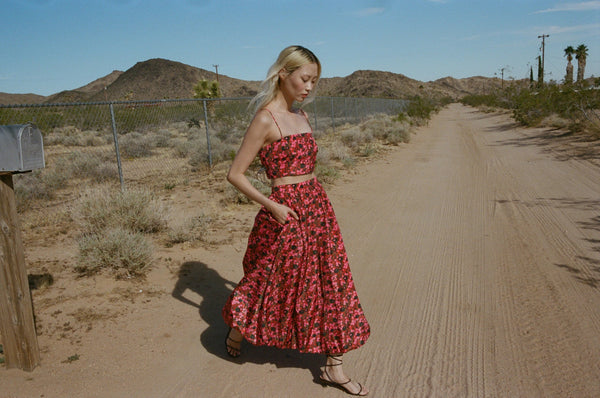 Cut in a cropped silhouette, the Penny Top features a boat neckline and spaghetti straps for a feminine fit. Bedecked in our vibrant Flora Splash print, it looks cool with our matching Cassandra skirt. Dress it up for special occasions or pair it with denim for a day at the Farmers Market.