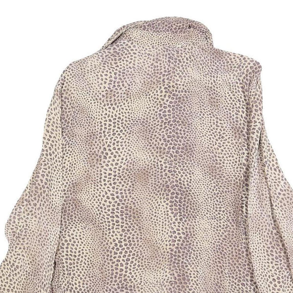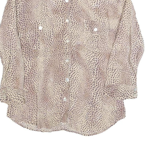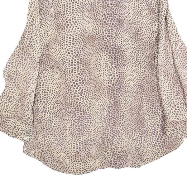 Tasha polzzi womens beige & brown printed shirt long sleeve button neck m rayon