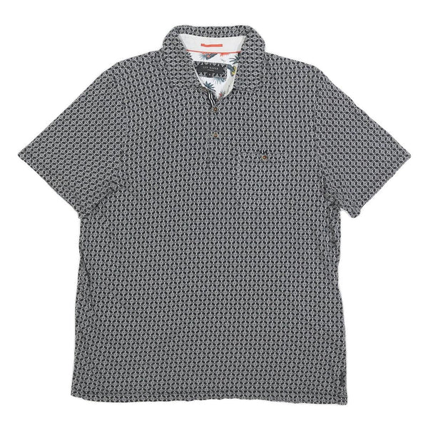 TED BAKER Mens Black & White Geometric Short Sleeve Polo Shirt L Cotton Blend