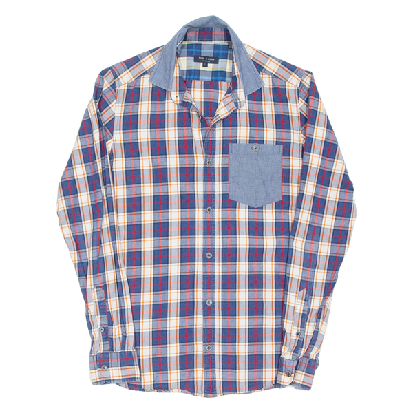 Home TED BAKER Mens Shirt Blue Check Long Sleeve XS