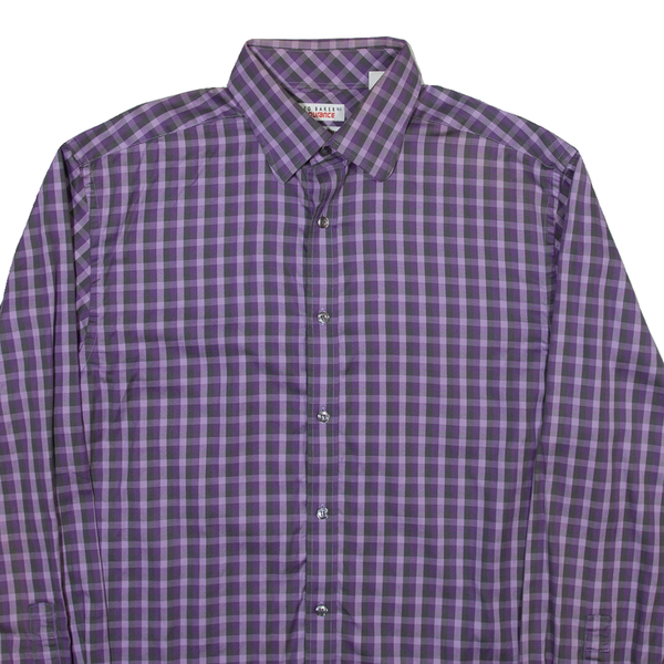 TED BAKER Mens Shirt Purple Check Long Sleeve L