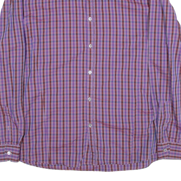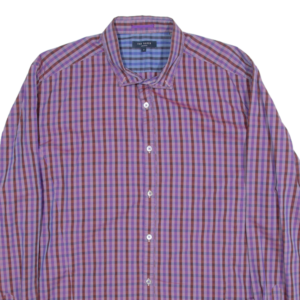 TED BAKER Mens Shirt Purple Gingham Long Sleeve L