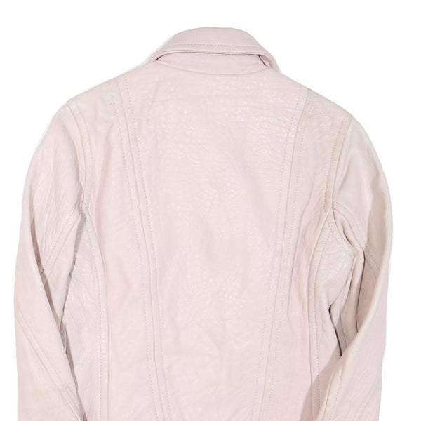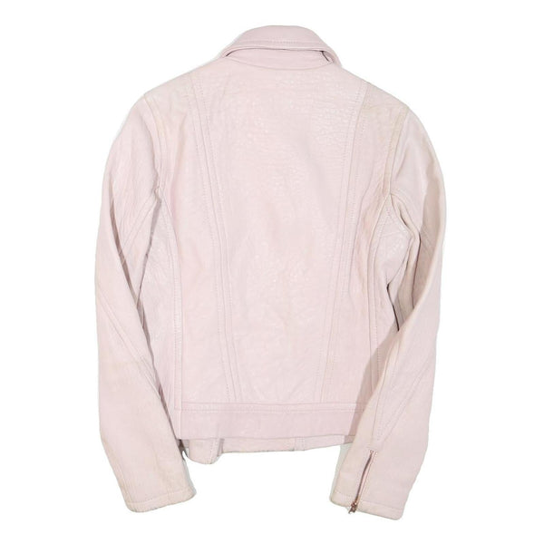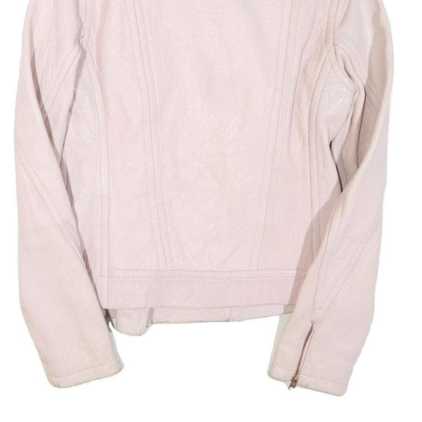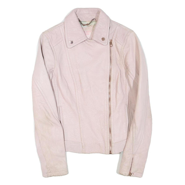 TED BAKER Womens Pink Faux Leather Zip Jacket S Plain Stylish Biker
