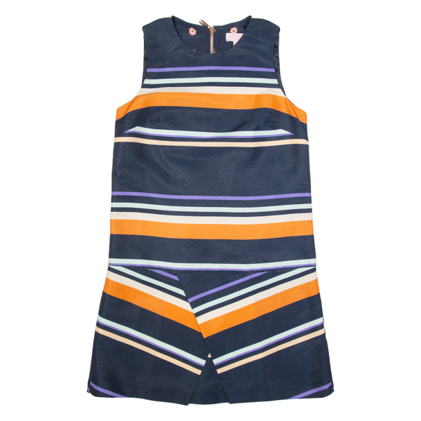 TED BAKER Womens Shift Dress Blue Striped Sleeveless Knee Length S