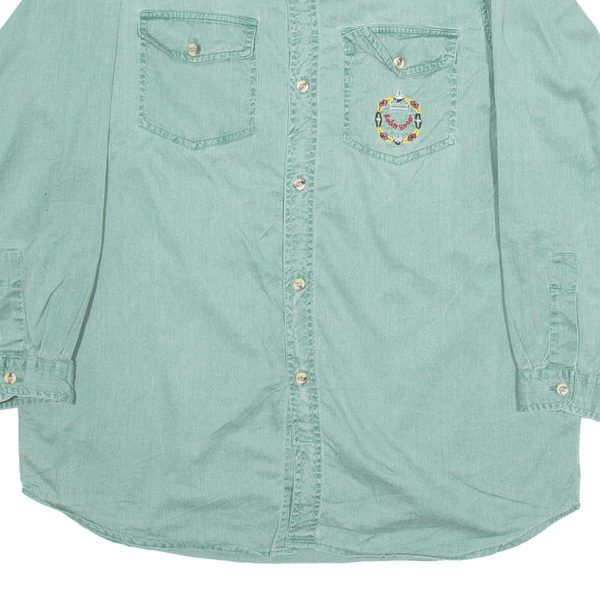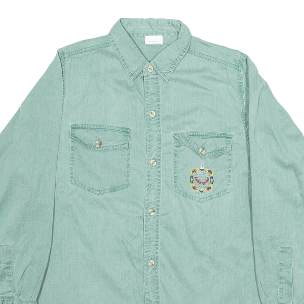 TEXTAR Mens Plain Shirt Green Long Sleeve M