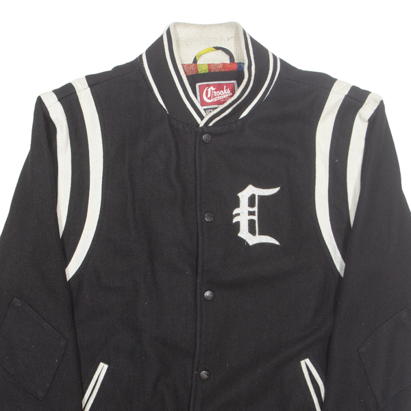 THE CROOKS Mens Varsity Jacket Black USA XL