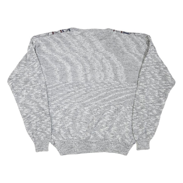 THE FOX Mens Grey Jumpers Patterned Crew Neck Basic Knit XL Wool Warm Casual