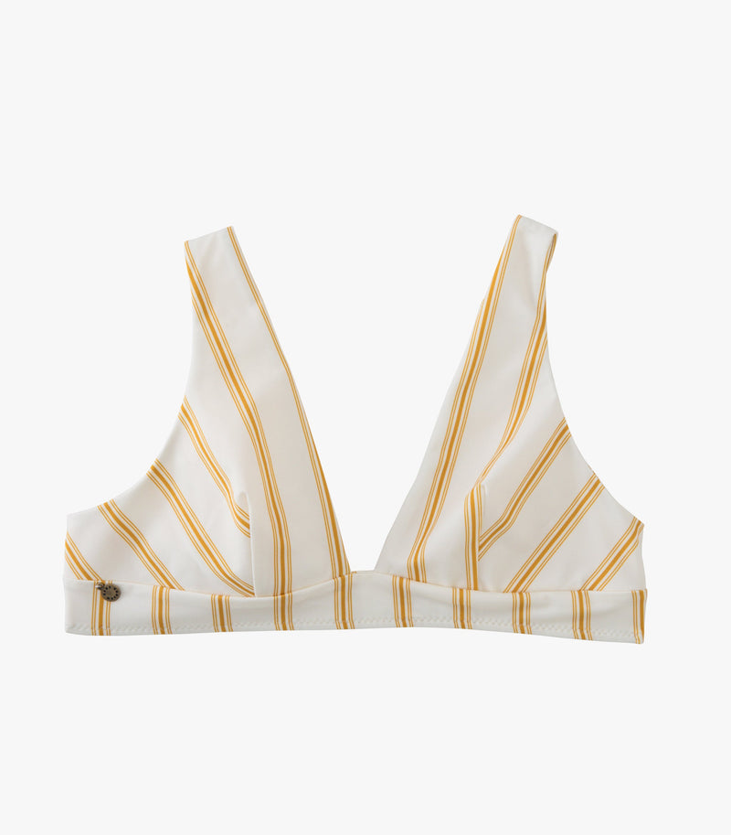 The Hanna top is a fully lined and seamless triangle top with front darts, enhancing the bust and providing optimal support. The plunging neckline is met with a wide bottom band, offering a supportive style with a modern edge. Featuring wide straps to maximize comfort and an ajustable hook-and-eye closure at the back.
