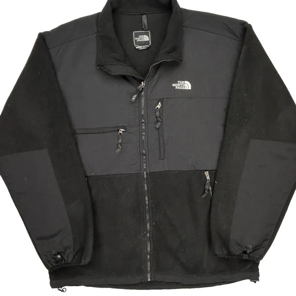 Men'S Black Fleece Jacket With Zipper Closure, Minor Wear Visible.