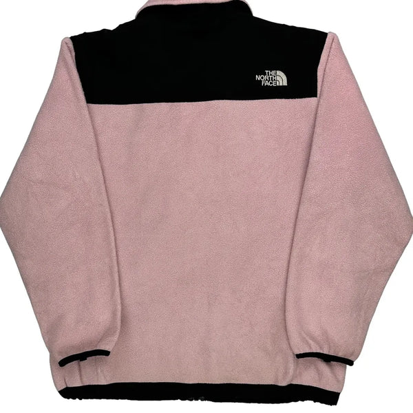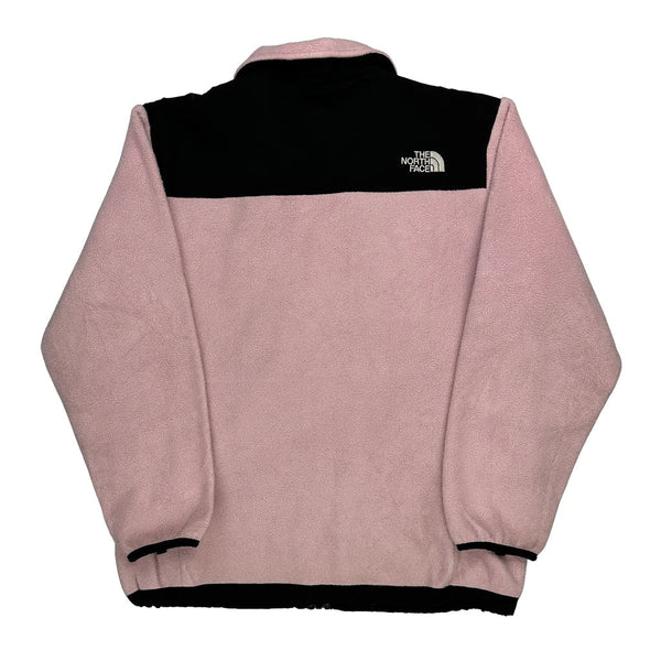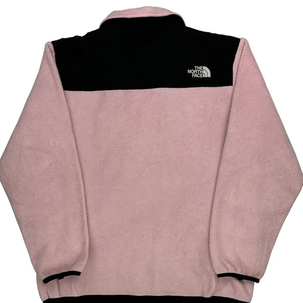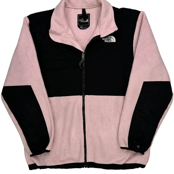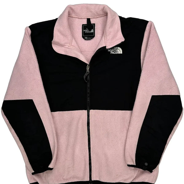 Pink And Black Fleece Jacket With Zipper Closure.