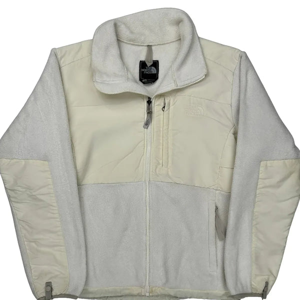 Cream Fleece Jacket With Zipper Closure And Adjustable Hem.