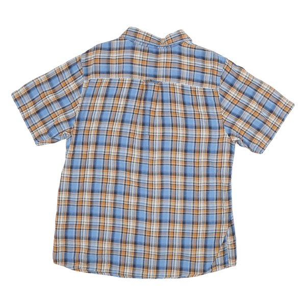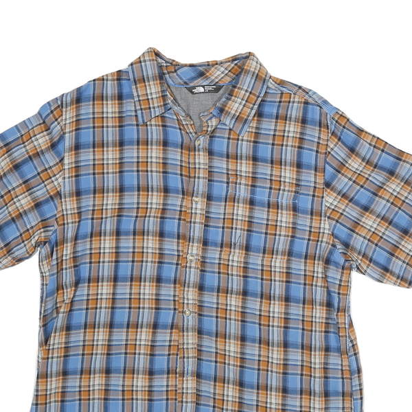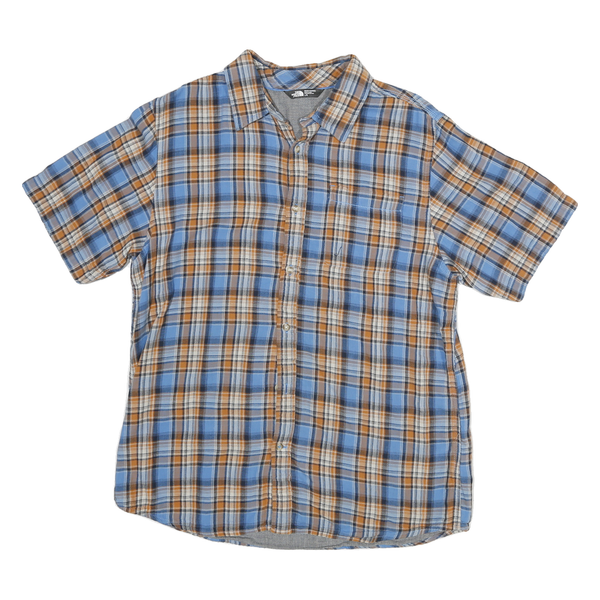THE NORTH FACE Mens Blue & Brown Plaid Short Sleeve Shirt L Cotton Blend Casual