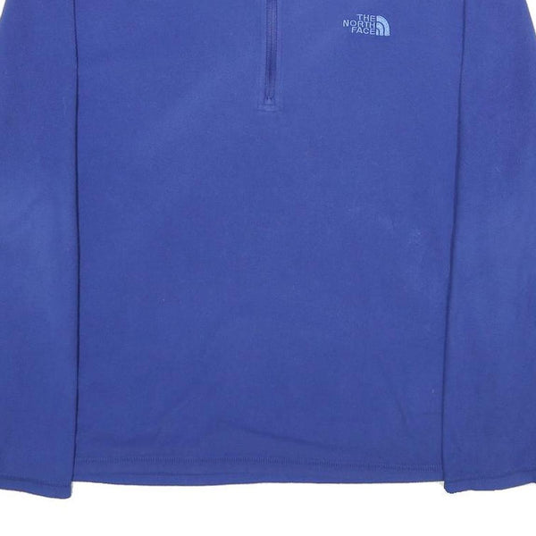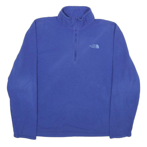This THE NORTH FACE mens jumper is in a bold blue colour with a small embroidered brand logo on the left chest. It features a plain design with a half zip at the neck, providing a casual and sporty look suitable for layering.